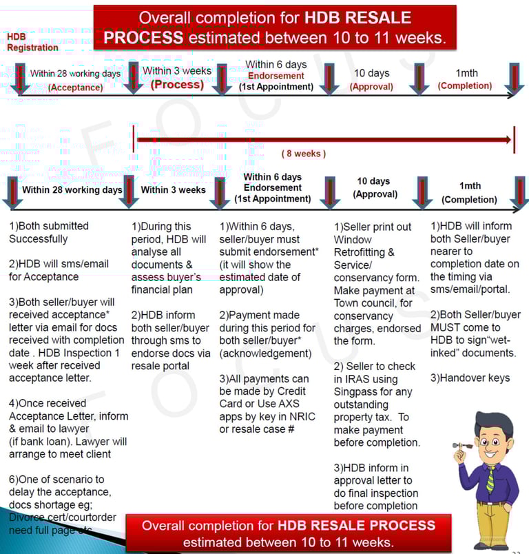 Once all documents are checked and in place (3 weeks), HDB will inform the parties to endorse the documents via the Portal.